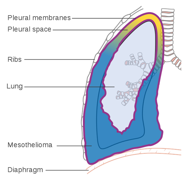 Pleural mesothelioma. Cancer Research UK uploader, CC BY-SA 4.0 via Wikimedia Commons.